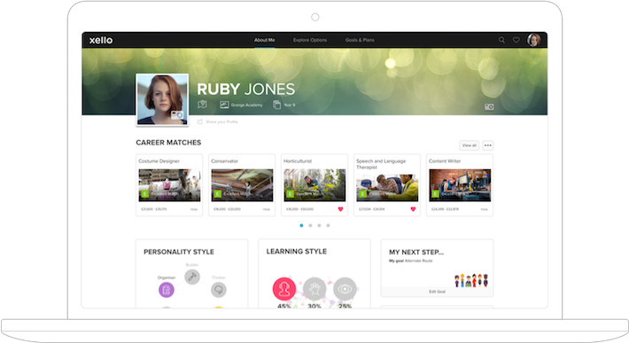 Students personalise their Xello experience by creating a shareable, online portfolio that showcases their interests, skills, and abilities. Profiles are easily updated as students gain new experiences, reflecting who they are every step of the way.